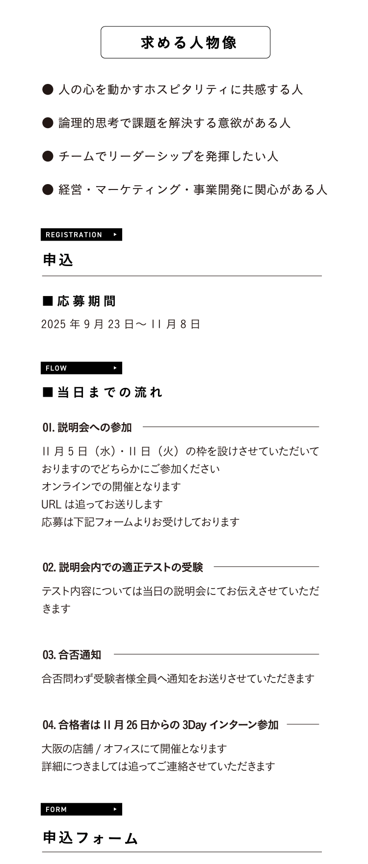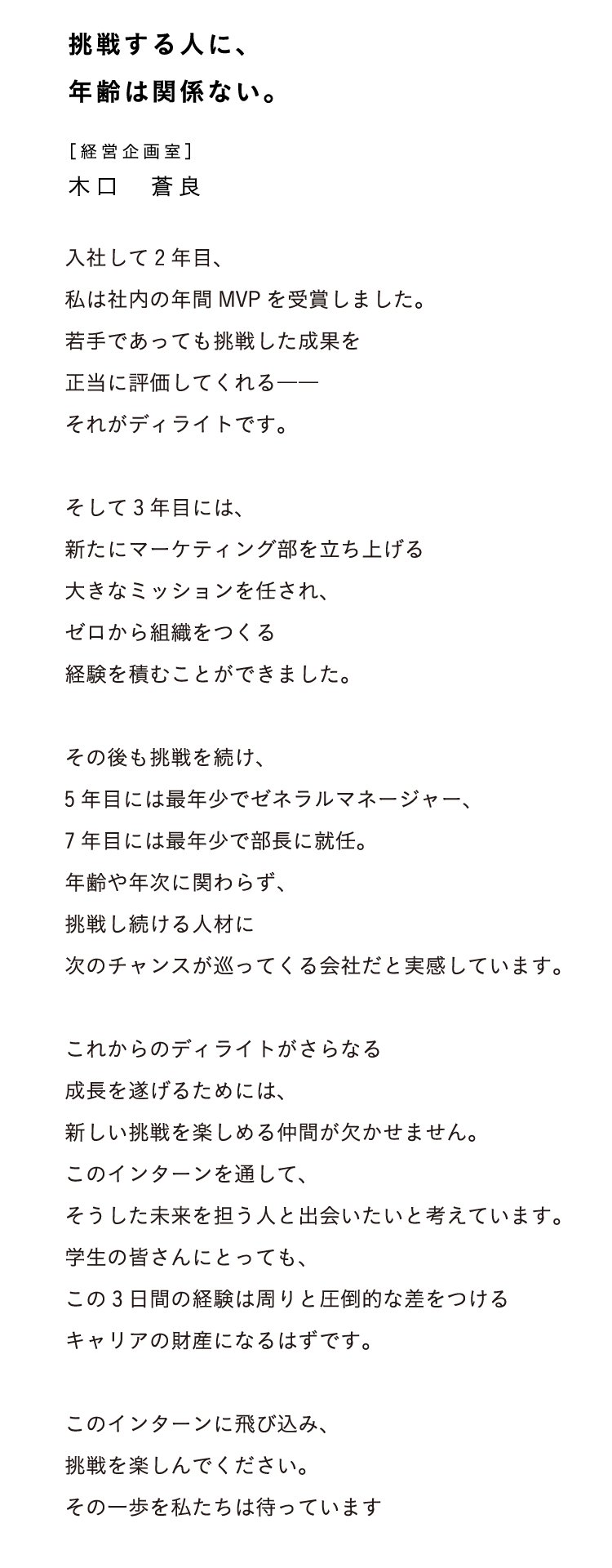 必須お名前 必須フリガナ 必須大学名 必須学部 必須学年 1年 2年 3年 4年 その他 必須電話番号 必須メールアドレス 必須説明会参加希望日 11月05日(水) 11月11日(火) 説明会参加希望日を一つ以上選択してください。 必須参加確認 3Dayインターン(11/26、27、28)は全日程ご参加必須でお願いします 確認しました リセット 送付最終確認する